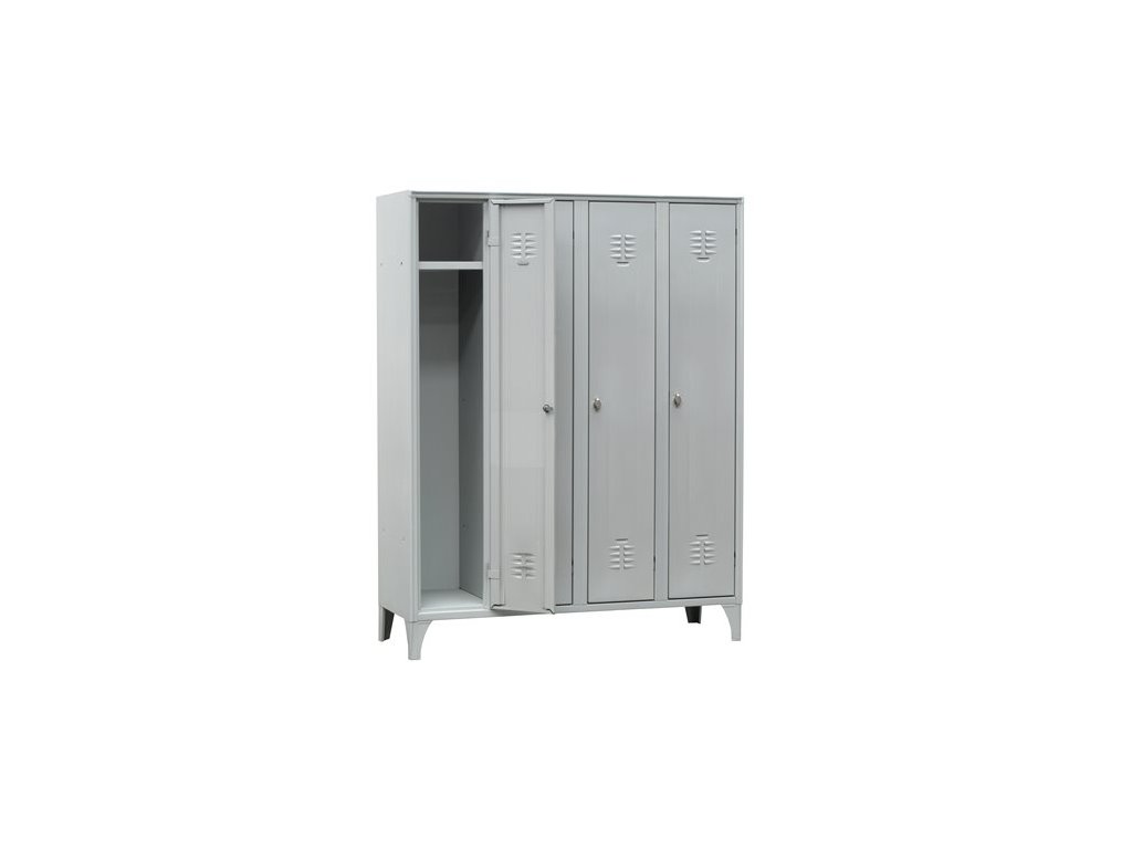 oceľová skrinka sivej farby, bezpečnostný zámok s 2 kľúčmi, tyč na vešiaky, s policou jedným vešiakom, držiak na uterák aj dáždnik (UMH4), vetranie je zabezpečené vetrákmi, miesto na štítok, 15 cm nohy alebo plný podstavec, šírka priečinkov: 30 cmDodatočné parametre