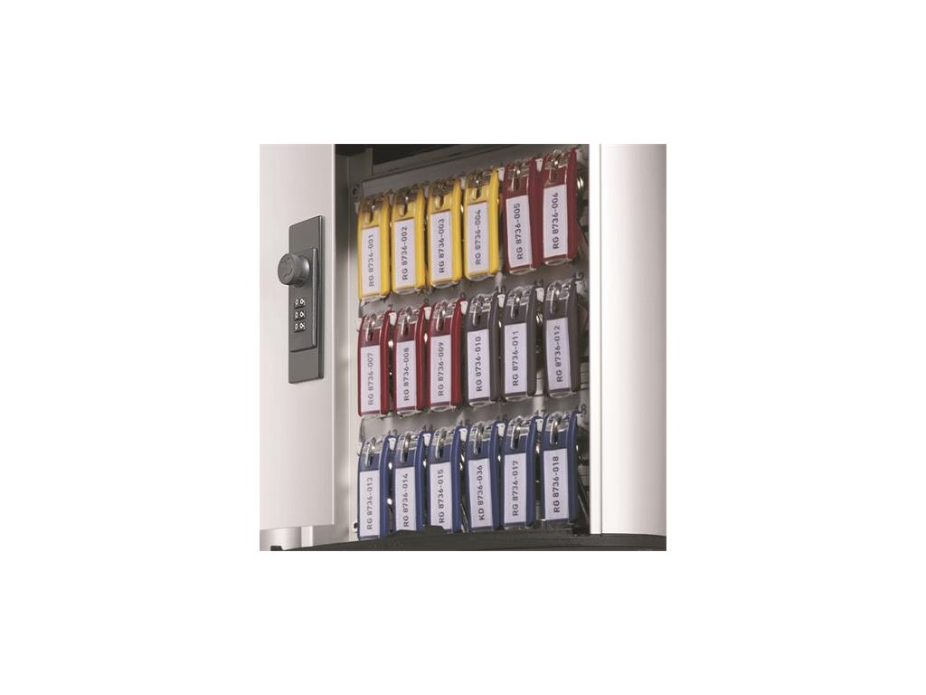 Vďaka číselnému uzamykaniu skrinky môžete mať svoje kľúče v bezpečí. Ideálne pre miesta, kde má prístup k kľúčom viac ľudí. - zmenu kódu je možné nastaviť rýchlym a ľahkým postupom, ktorý nevyžaduje ďalšie nástroje - kľúče sú pohodlne prístupné vďaka veľkému otváraniu dverí - výška vešiakov na kľúče je nastaviteľná - index na zadnej strane dverí umožňuje rýchly prehľad o obsahu skrinky s kľúčmi - rozširujúci set je možné zakúpiť samostatne - štítok je možné stiahnuť zadarmo - s príslušenstvom na montáž - Obsahuje 6 kľúčeniek v rôznych farbáchDodatočné parametre