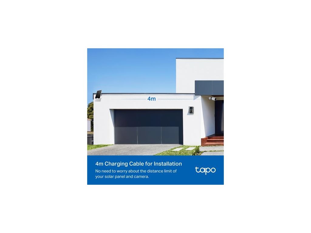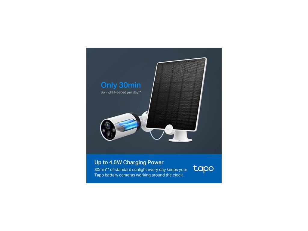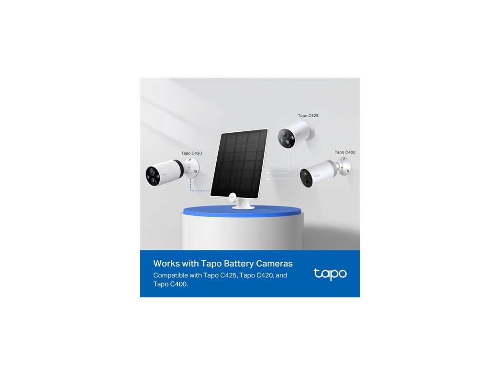- Nepretržitá slnečná energia - Zachytáva bezplatnú, čistú slnečnú energiu a poskytuje nepretržitú energiu pre vaše fotoaparáty Tapo napájané z batérie (Tapo C425, Tapo C420 a Tapo C400), čím zaisťuje, že vás budú chrániť po celý rok.