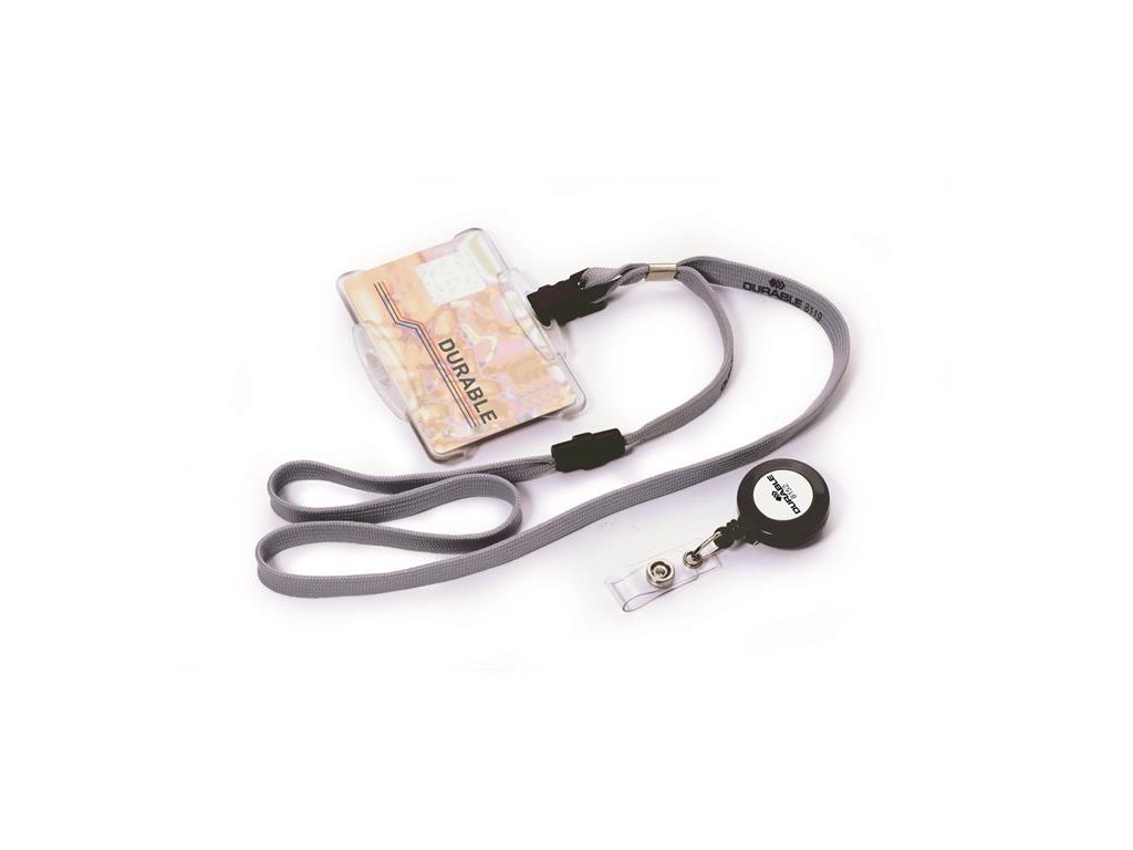 Šnúrka na krk, s klipom, DURABLE, sivá