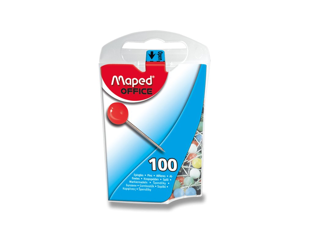 Špendlíky Maped barevné, malé - 100 ks, plastová krabička