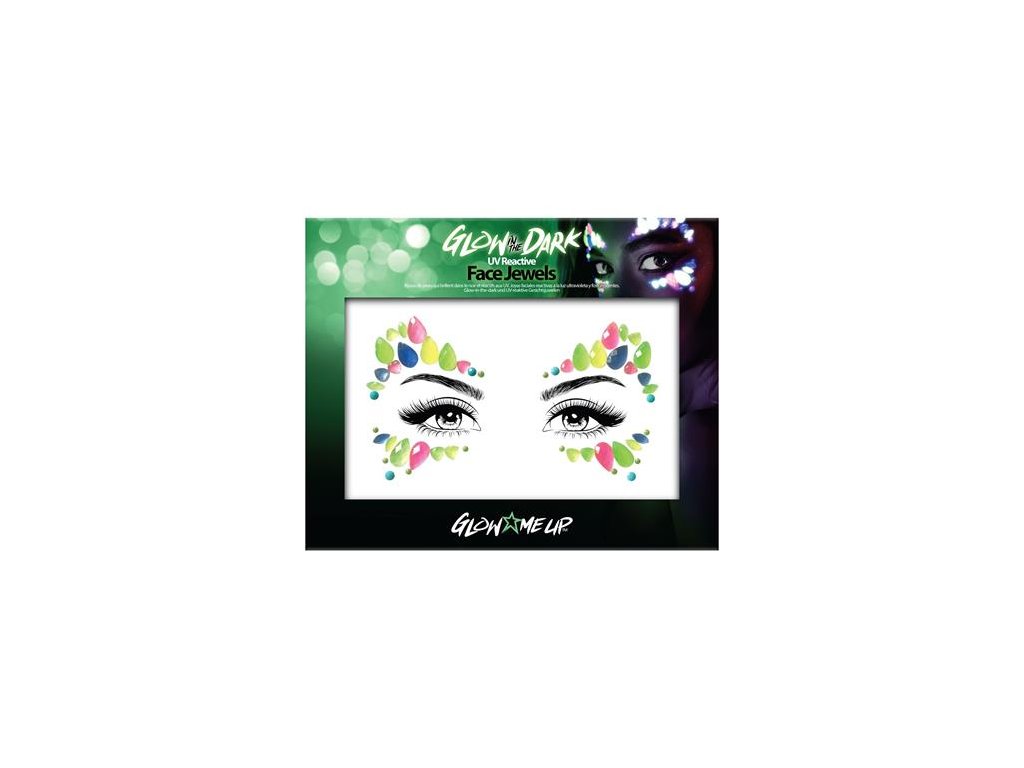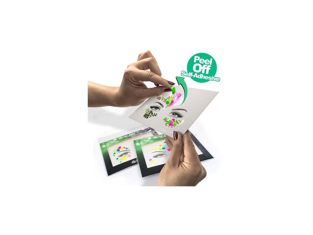 Šperky na tvár, sada, samolepiace, fluoreskujúce pod UV svetlom, „"Glow in the dark", neónové farby