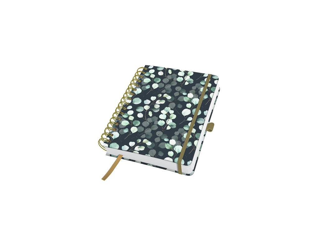 Špirálový zošit, 168x215 mm, bodkovaný, 120 listov, tvrdá obálka, SIGEL "Jolie Eucalyptus Night"