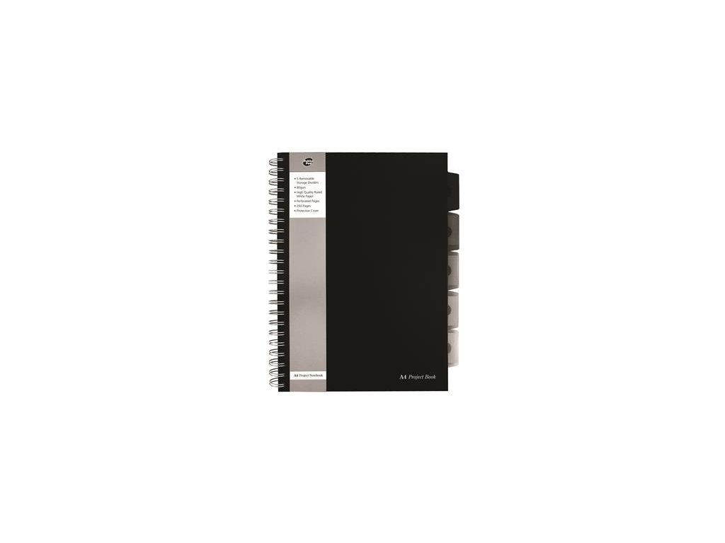 Špirálový zošit, A4, linajkový, 125 strán, PUKKA PAD "Black project book", čierna
