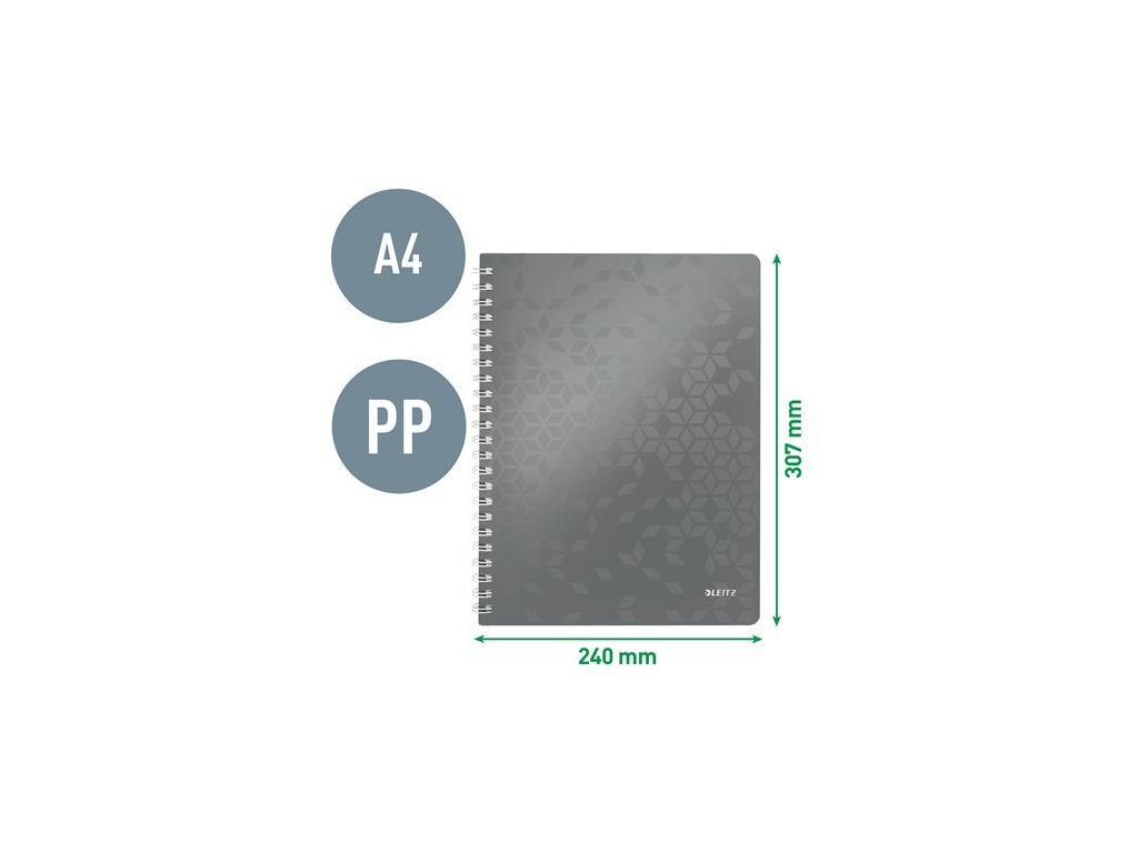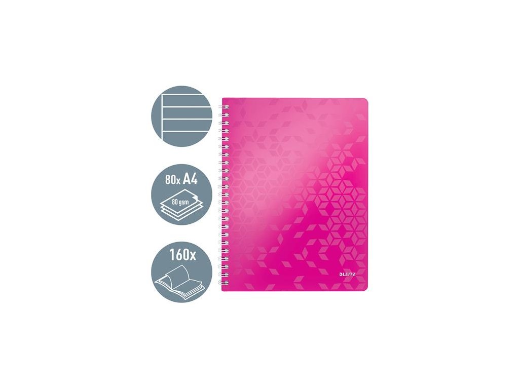 Špirálový zošit, A4, linajkový, 80 listov, LEITZ "Wow", ružový