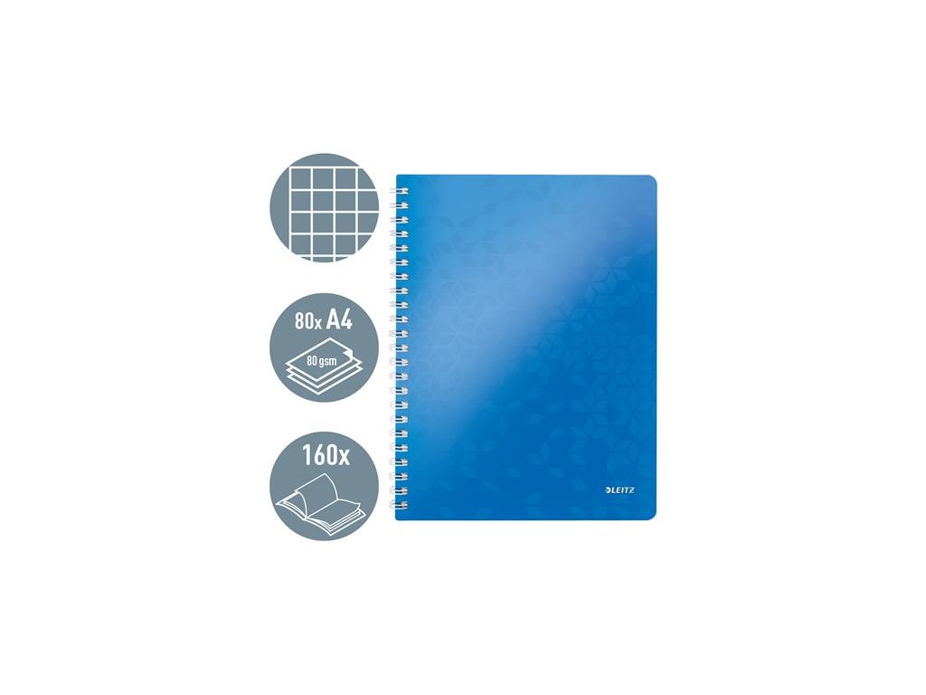 Špirálový zošit, A4, štvorčekový, 80 listov, LEITZ "Wow", modrý