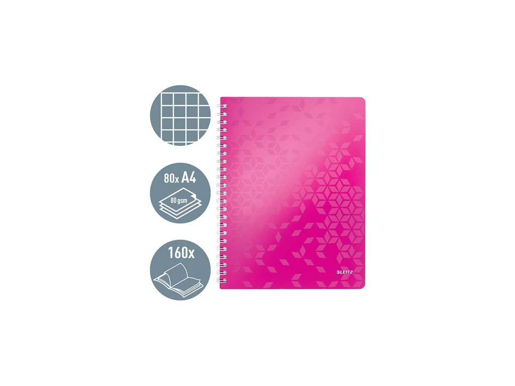 Špirálový zošit, A4, štvorčekový, 80 listov, LEITZ "Wow", ružový