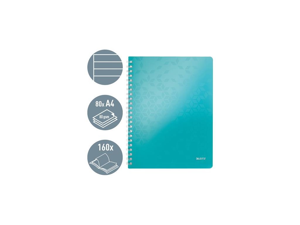 Špiralový zošit, A4 linajkový, 80 listov, LEITZ "Wow", ladovo modrý