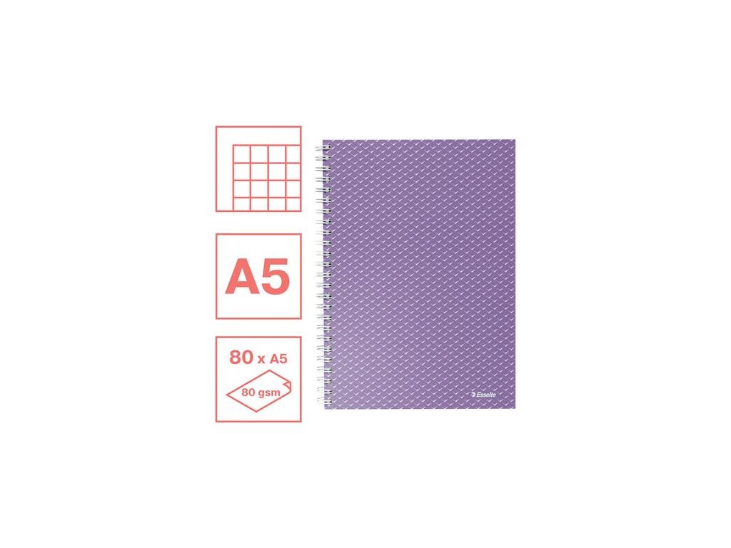 Špirálový zošit, A5, štvorčekový, 80 listov, ESSELTE "Colour`Breeze", levanduľa