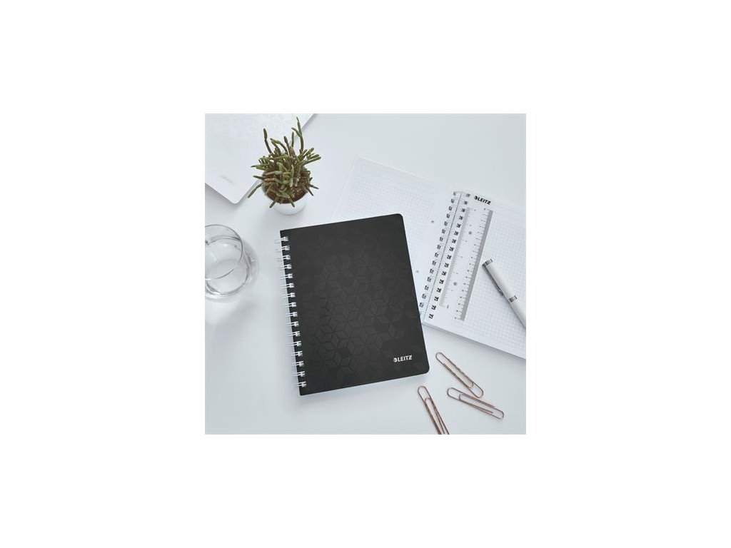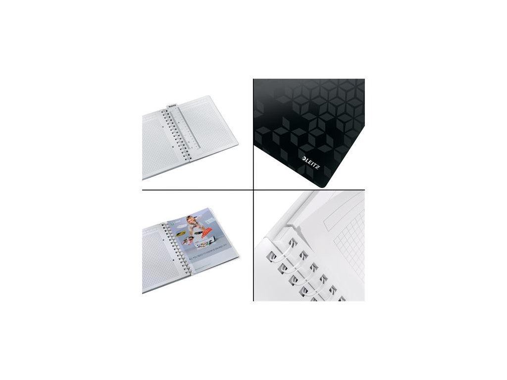 Špirálový zošit, A5, štvorčekový, 80 listov, LEITZ "Wow", čierna