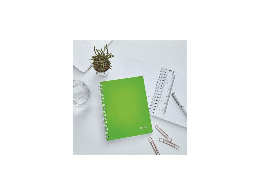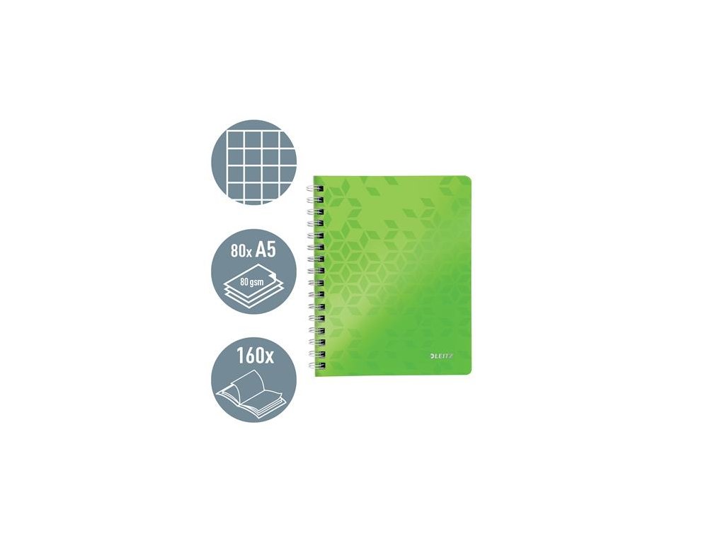 Špirálový zošit, A5, štvorčekový, 80 listov, LEITZ "Wow", zelená