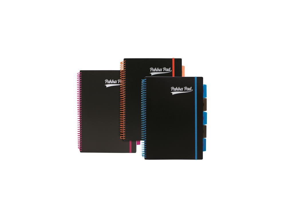 Špirálový zošit, AA, linajkový, 100 strán, PUKKA PAD, "Neon black project book"
