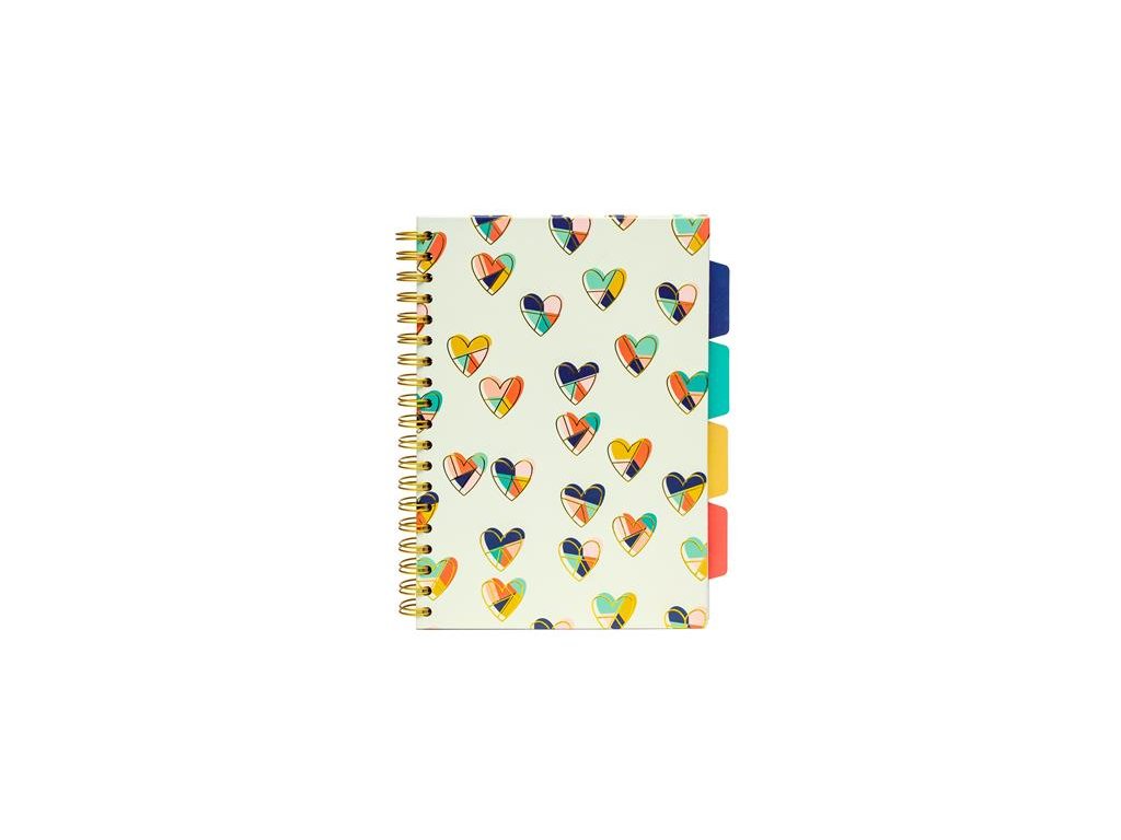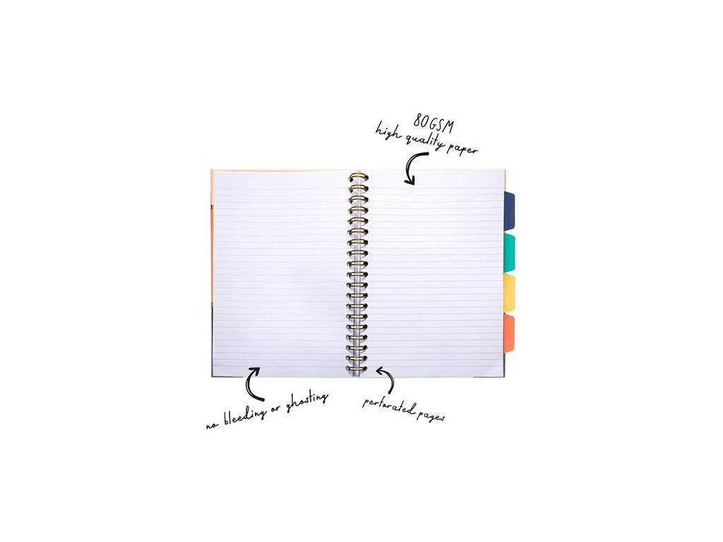 tvrdá obálka dvojitá špirála uzatváranie pomocou gumičky mikroperforované listy 4 ks farebných registrov s vreckom 80 g/m2 papier mix vzorov, vzor sa nedá vzbraťDodatočné parametre