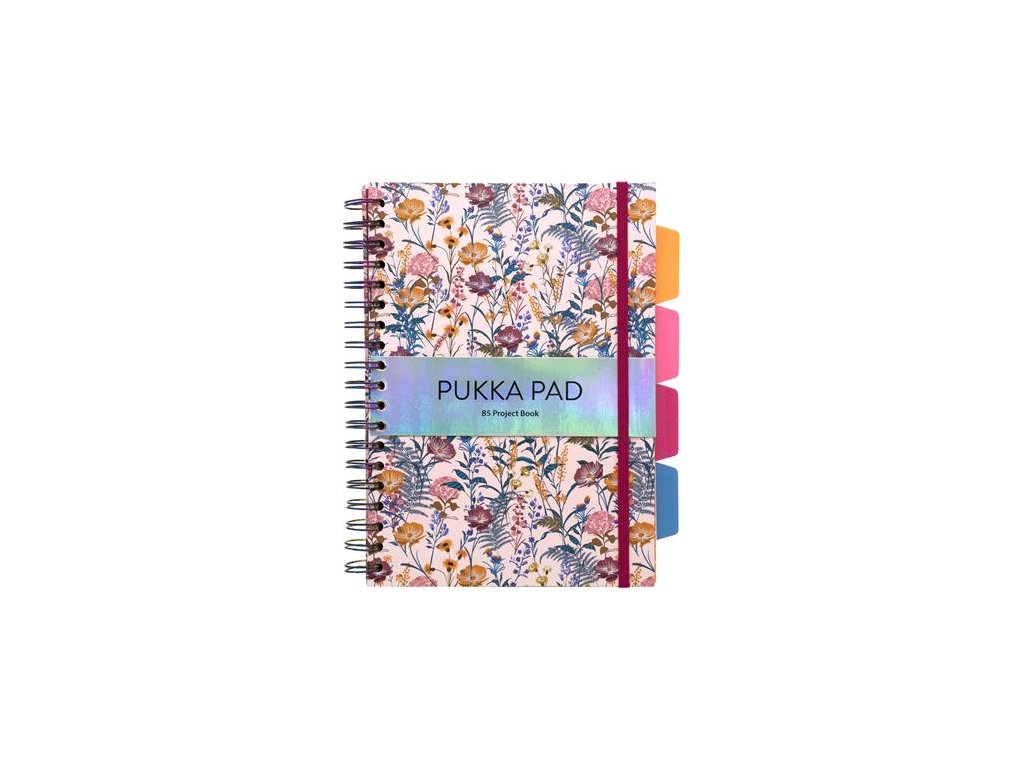 Špirálový zošit, B5, linajkový, 100 listov, PUKKA PAD "Project Book Bloom", rôzne vzory