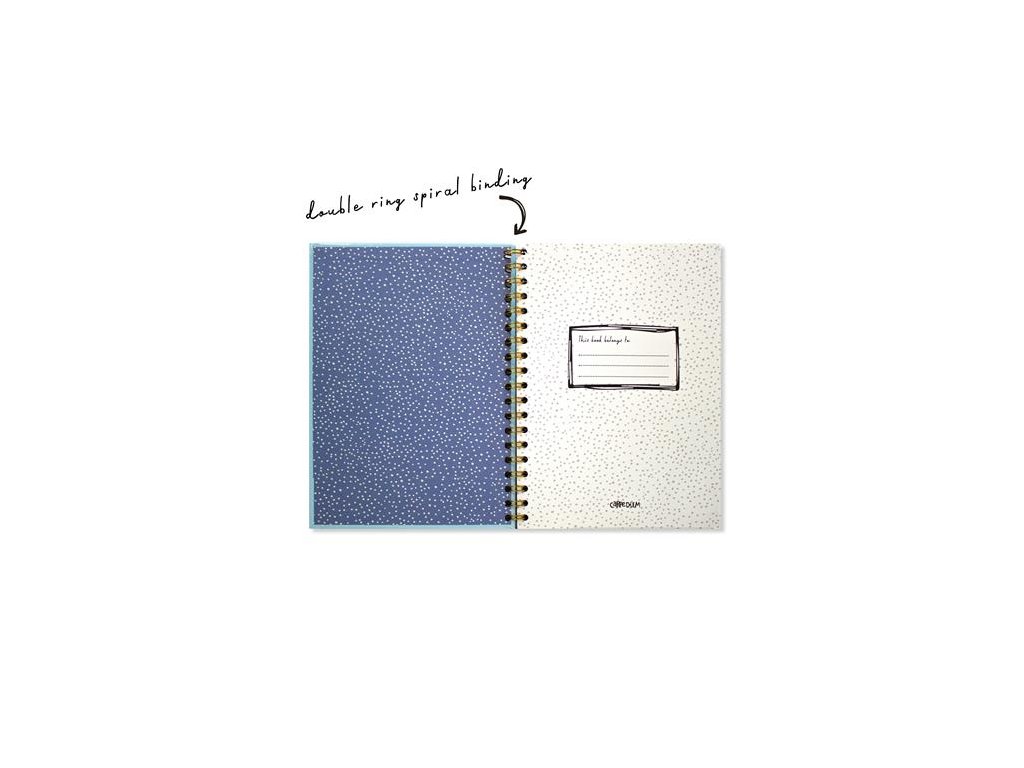 Naša kolekcia Carpe Diem má za cieľ byť trendová, jednoduchá a zároveň praktická. Navrhnutá je tak, aby ťa inšpirovala k usporiadanejšiemu životu.- vysokokvalitný zošit s tvrdou väzbou -dvojitá špirála v zlatej farbe -papier s gramážou 80 g/m² -160 strán -rozmery: 250x187 mm