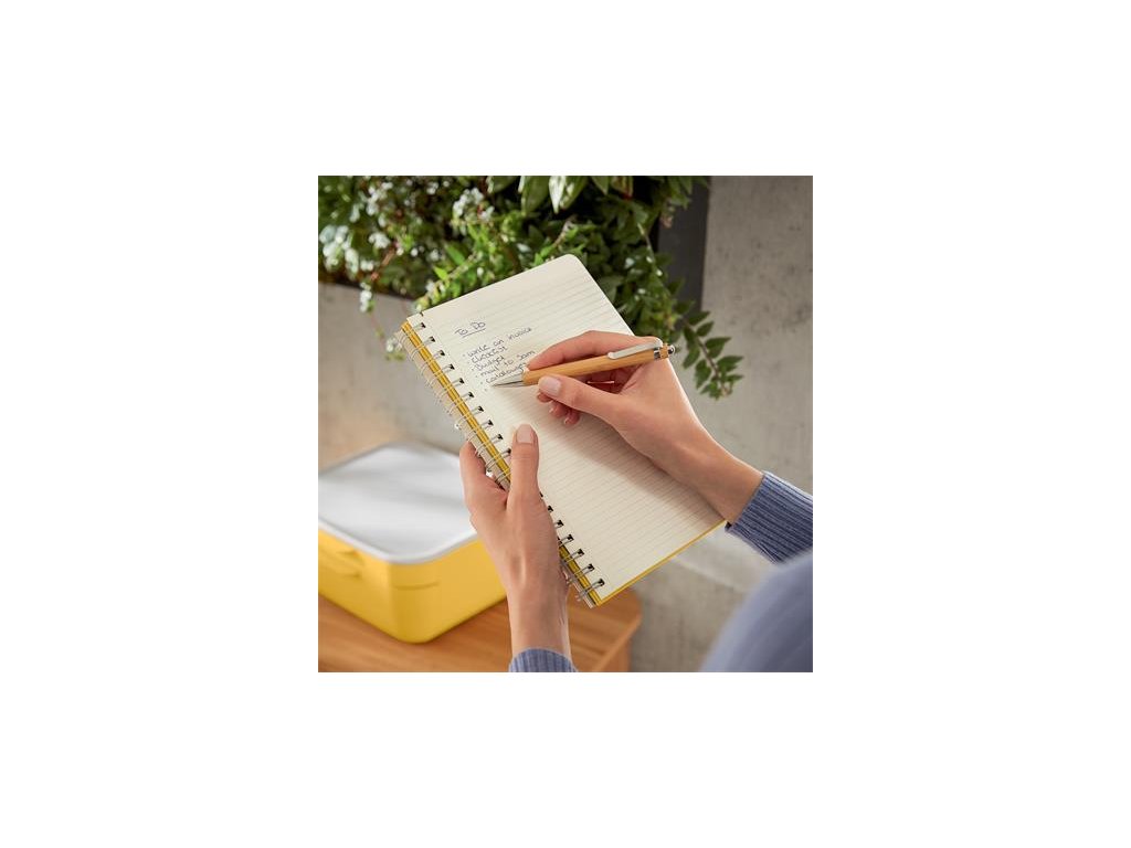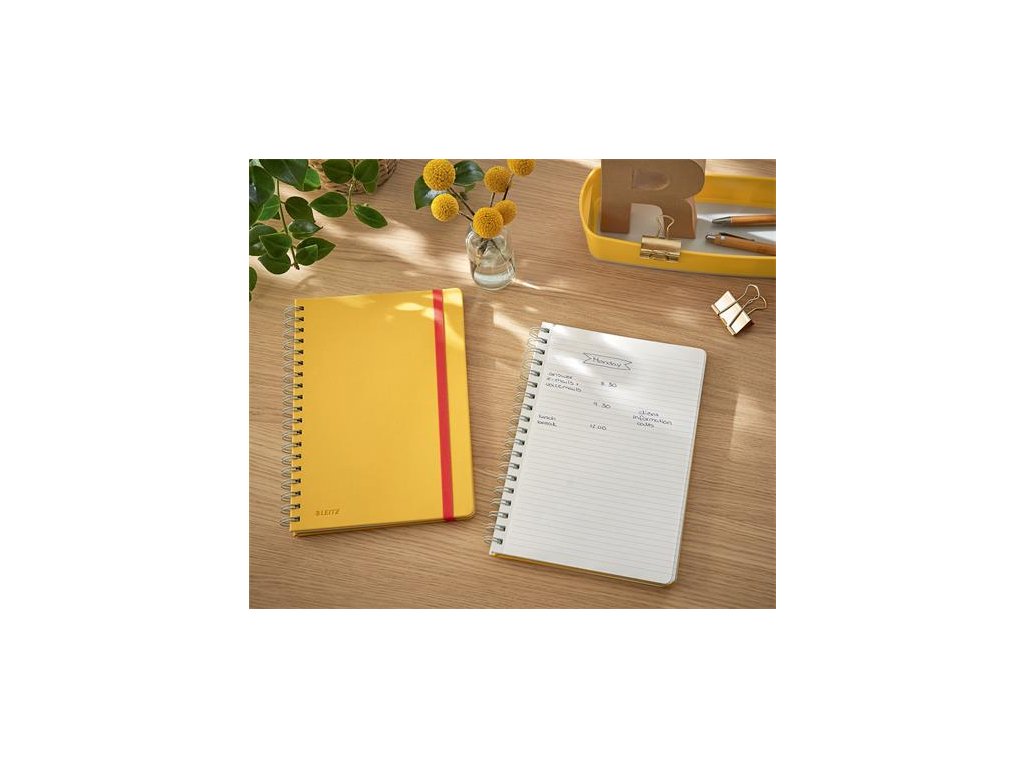 Produkty Leitz Cosy prinášajú vášmu pracovnému prostrediu štýl vďaka minimalistickému dizajnu, matnému povrchu a teplej farebnej škále Linajkový špirálový zošit so záložkou a praktickým úložným vreckom na poslednej strane Vďaka špirálovej väzbe možno listy vyklopiť o 360 °, takže si môžete robiť poznámky aj na cestách Silný a pružný gumový pás zaisťuje, že sa zošit počas prepravy neotvorí Prvá stránka s kontaktnými informáciami Gramáž papiera: 100 g / m2 Typ: linajkový papier Formát: B5 Obsah: 80 listov Farba: teplá žltá Značka: LEITZ Výrobca: Esselte Kft. Adresa: 1139 Budapest, Lomb u. 37-39. A ép. II. 8., Hungary Web: https://www.accobrands.com/brands/ Email: hungarymarketing@acco.comDodatočné parametre