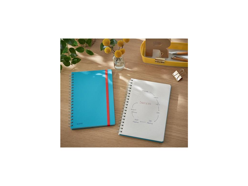Produkty Leitz Cosy prinášajú vášmu pracovnému prostrediu štýl vďaka minimalistickému dizajnu, matnému povrchu a teplej farebnej škále Štvorčekový špirálový zošit so záložkou a praktickým úložným vreckom na poslednej strane Vďaka špirálovej väzbe možno listy vyklopiť o 360 °, takže si môžete robiť poznámky aj na cestách Silný a pružný gumový pás zaisťuje, že sa zošit počas prepravy neotvorí Prvá stránka s kontaktnými informáciami Gramáž papiera: 100 g / m2 Typ: štvorčekový papier Formát: B5 Obsah: 80 listov Farba: pokojná modrá Značka: LEITZ Výrobca: Esselte Kft. Adresa: 1139 Budapest, Lomb u. 37-39. A ép. II. 8., Hungary Web: https://www.accobrands.com/brands/ Email: hungarymarketing@acco.comDodatočné parametre