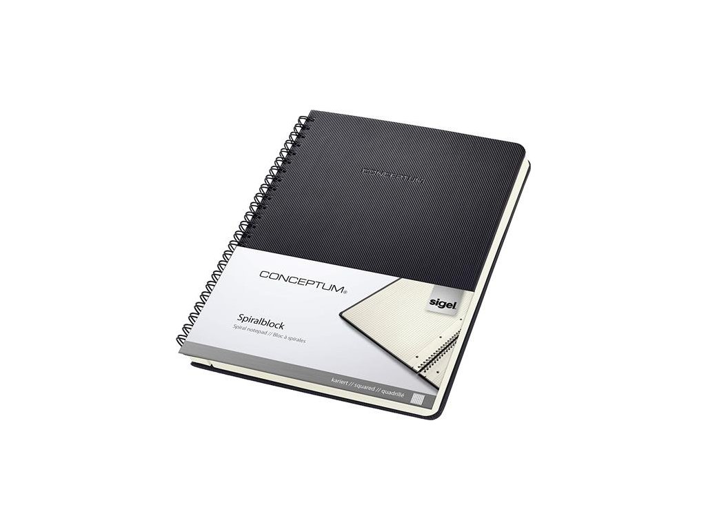 Špirálový zošit, exkluzívny, A5, štvorčekový, 80 listov, tvrdá obálka, SIGEL "Conceptum", čierna