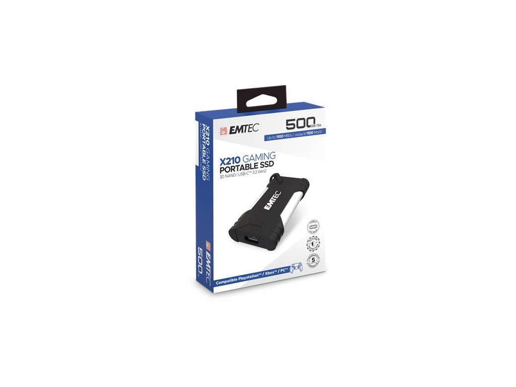 Nepostrádateľný doplnok pre hráčov. -kompatibilné s najnovšími konzolami (Playstation®, Xbox), zariadeniami Mac a Windows, Smart TV -elegantný dizajn, biely matný kryt, silikónová ochrana -USB rozhranie: USB-C 3.2 Gen2 (10 Gbps) - super rýchla technológia 3D NAND, rýchlosť prenosu dát až 1100 MB/s - produkt obsahuje 2 káble: 1 kábel USB-C 3.2 Gen2/USB-A a 1 kábel USB-C/USB-C - kompaktný rozmer: 70x40x11 mm - ultra ľahké Značka: EMTEC Výrobca: DEXXON GROUPE HOLDING Adresa: Avenue Louis Roche 79 92230, Gennevilliers Web: www.dexxon.eu Email: support.emtec@dexxon.euDodatočné parametre