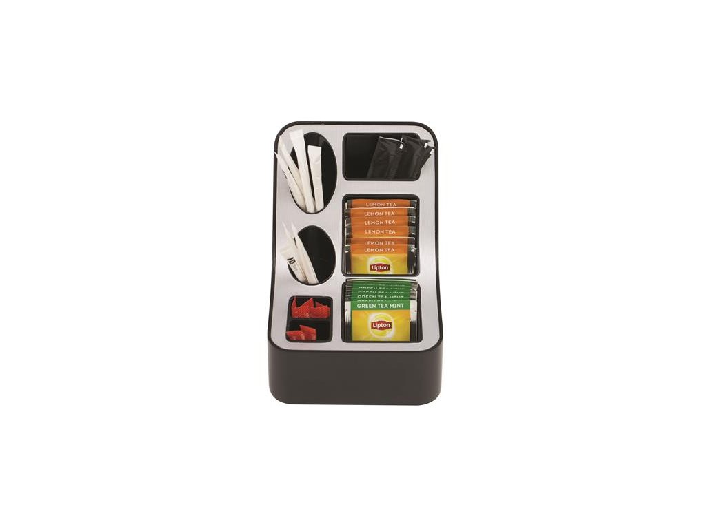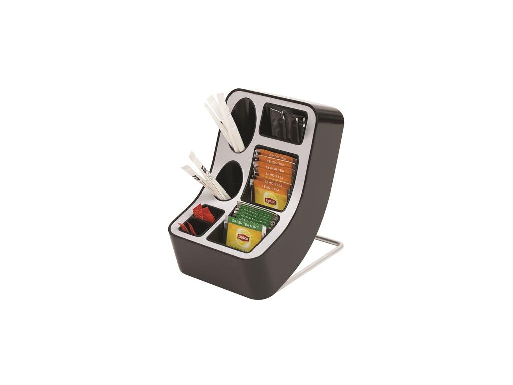 Moderný, funkčný ponukový stojan na čaj so 6 priehradkami. 2 väčšie priehradky sú vhodné na uloženie čajových filtrov, 4 menšie priehradky na cukor a miešatká. Elegantné a odolné vyhotovenie, kombinácia hliníka a plastu. Pohodlná a jednoduchá manipulácia. Značka: ALBA Výrobca: Albert S.A. Adresa: 8 rue Huntziger, 92110 Clichy la Garenne, France Web: https://alba-creation.com/fr/en/ Email: export@albaland.comDodatočné parametre