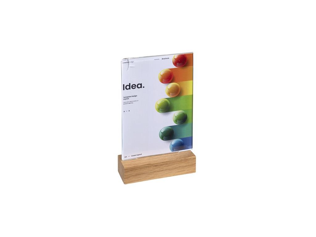 Ideálny na vystavenie fotografií, informácií, jedálnych lístkov či ponúk na stole. -vyrobený z kvalitného akrylu zvislá (stojatá) orientácia -priehľadný -podstavec z dreva -obojstranný -rozmery: 105 x 50 x 180 mm -odolný voči UV žiareniuDodatočné parametre