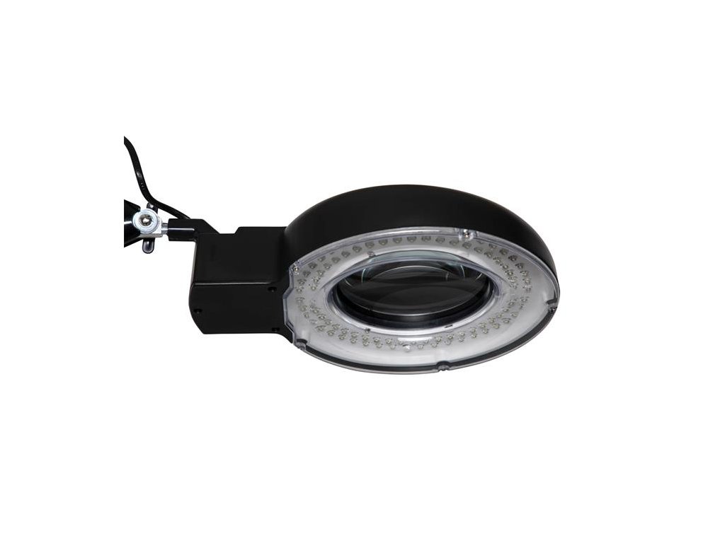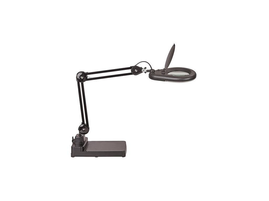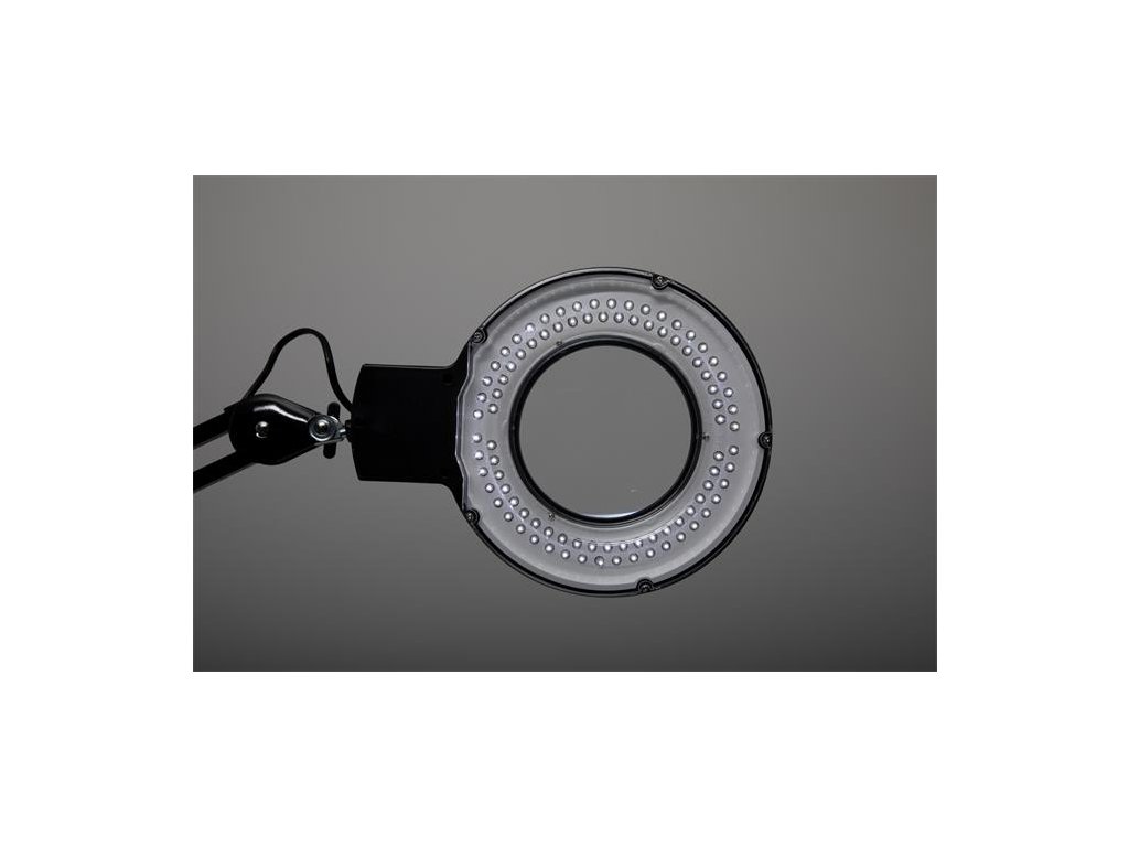 Lupová lampa energeticky úspornej triedy „B“ s kruhovou hlavicou so svietivosťou denného svetla - svetlom s vysokou svetelnou silou a čistotou odrazu a kontrolkou ECG, ktorá zabezpečuje nízky odber energie a pri vypnutí vypínačom je bez odberu. Ďalšou výhodou je dlhá životnosť lampy. Šošovka s 3 dioptriami so 75% zväčšením, zväčšovací priestor 126 cm2. Kovové ramená dĺžky 31 cm, výška pracovnej pozície 50 cm, dĺžka kábla 1,6 m. Plastová základňa 32×22 cm rotujúca o 60 °. Dodávaná s 22 W úspornou žiarivkou.Dodatočné parametre