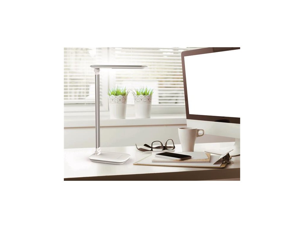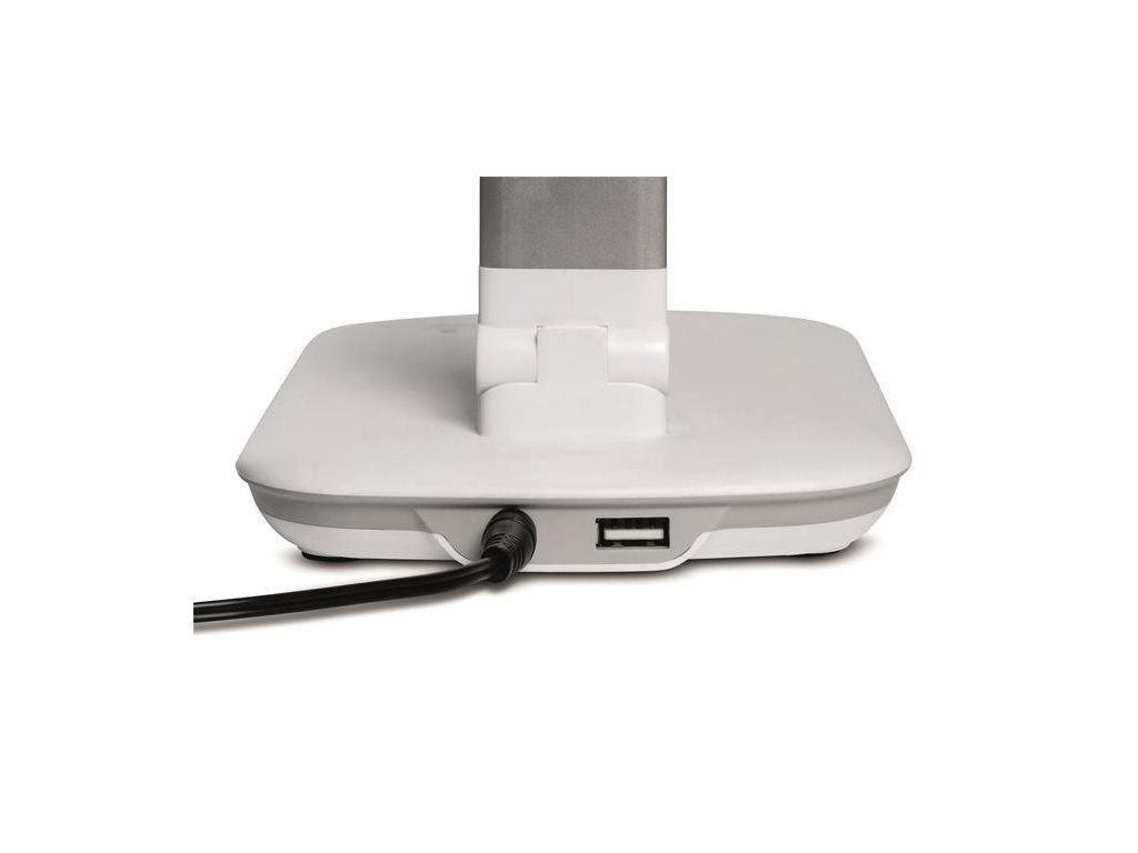 Lampa s integrovaným USB typu A na nabíjanie smartfónu a 5-stupňovým stmievačom s dotykovou funkciou na základni svietidla. Energeticky úsporná trieda „A“ (spektrá A++ - E) s 24 LED žiarovkami bez možnosti ich výmeny so životnosťou 20 000 hodín s teplým bielym svetlom 3 000 °K. Svietivosť 2 060 lx pri vzdialenosti 35 cm od stola, svetelný tok 410 lúmenov, extrémne nízka spotreba energie cca 8 kWh / 1 000 h. Sklopná a otočná svetelná hlavica 26 × 5 cm, stabilný podstavec 18 × 13 cm so závažím a podložkou proti poškodeniu dosky stola. Rameno z eloxovaného hliníka, dĺžka 36,5 cm, výška normálnej pracovnej pozície 41 cm, dĺžka kábla 1,8 m.Dodatočné parametre