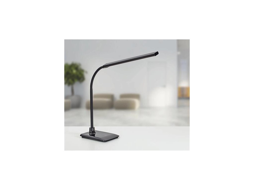 Energeticky úsporná stolová lampa vyrobená najnovšou technológiou LED. Ovládanie jasu, ktoré možno prispôsobiť aktivite a individuálnym potrebám. Čistý, decentný dizajn, harmonicky zapadá do priestoru. - svetelný zdroj: vstavaný LED panel, LED žiarovky sú vymeniteľné v tele svietidla - intenzita svetla: 726 lumenov, nastaviteľná v 4 úrovniach - osvetlenie: 1120 luxov vo vzdialenosti 35 cm - so stmievateľným dotykovým spínačom pre zníženie odtieňov - teplota farby: 3000 Kelvinov, teplá biela - priemerná životnosť LED: 50 000 hodín - priemerná spotreba energie: 6 kWh/1000 h - materiál ramena: kov, pogumovaný - materiál hlavy: hliník - dĺžka ramena: 38 cm - dĺžka hlavy: 32 cm - výška: 37,3 cm - hlava a rameno sa dajú naklápať a otáčať - vážený plastový podstavec, rozmer 16,7 cm x 12 cm - dotykový vypínač na podstavci - funguje zo siete 220/240 V - farba: čierna - záruka: 2 roky - hodnotenie energetickej účinnosti: E ??(na stupnici A-G)Dodatočné parametre