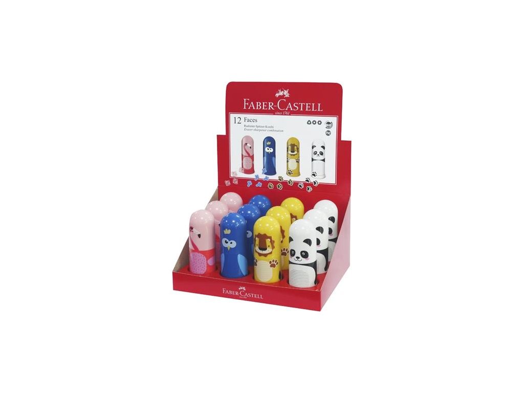 Strúhadlo, jednodierové, so zásobníkom, s gumou, displej, FABER-CASTELL "Faces", rôzne vzory