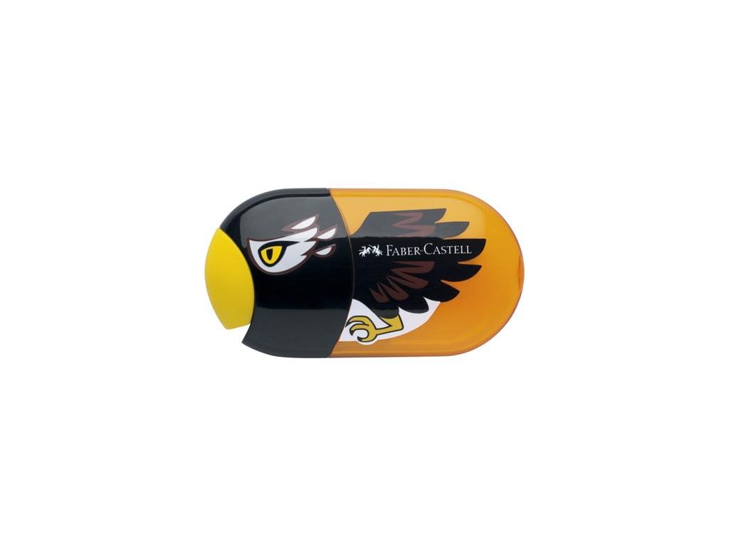 Strúhadlo a guma, 2 otvory, s nádobkou, FABER-CASTELL, motív: orol