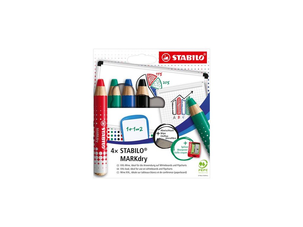 - STABILO MARKdry je suchý popisovač s hrubou farebnou tuhou na biele tabule a flipcharty- Píše na papier a hladké povrchy, z ktorých ich dokážete strieť na sucho alebo na mokro bez zanechania stôp.