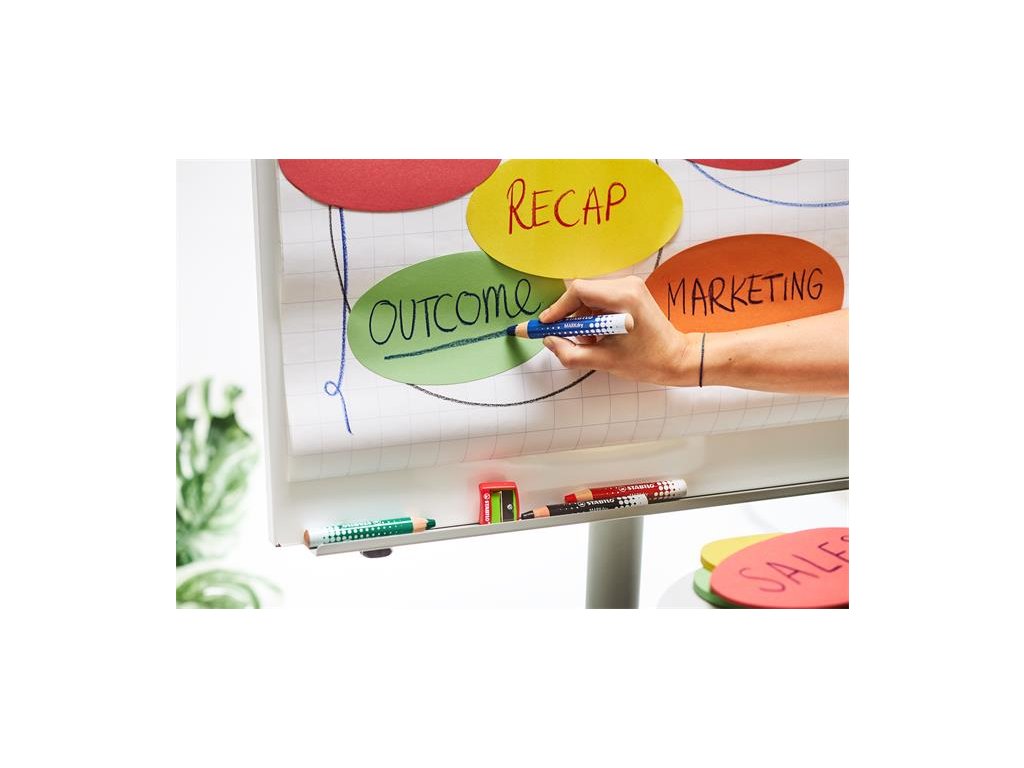 - STABILO MARKdry je suchý popisovač s hrubou farebnou tuhou na biele tabule a flipcharty- Píše na papier a hladké povrchy, z ktorých ich dokážete strieť na sucho alebo na mokro bez zanechania stôp.