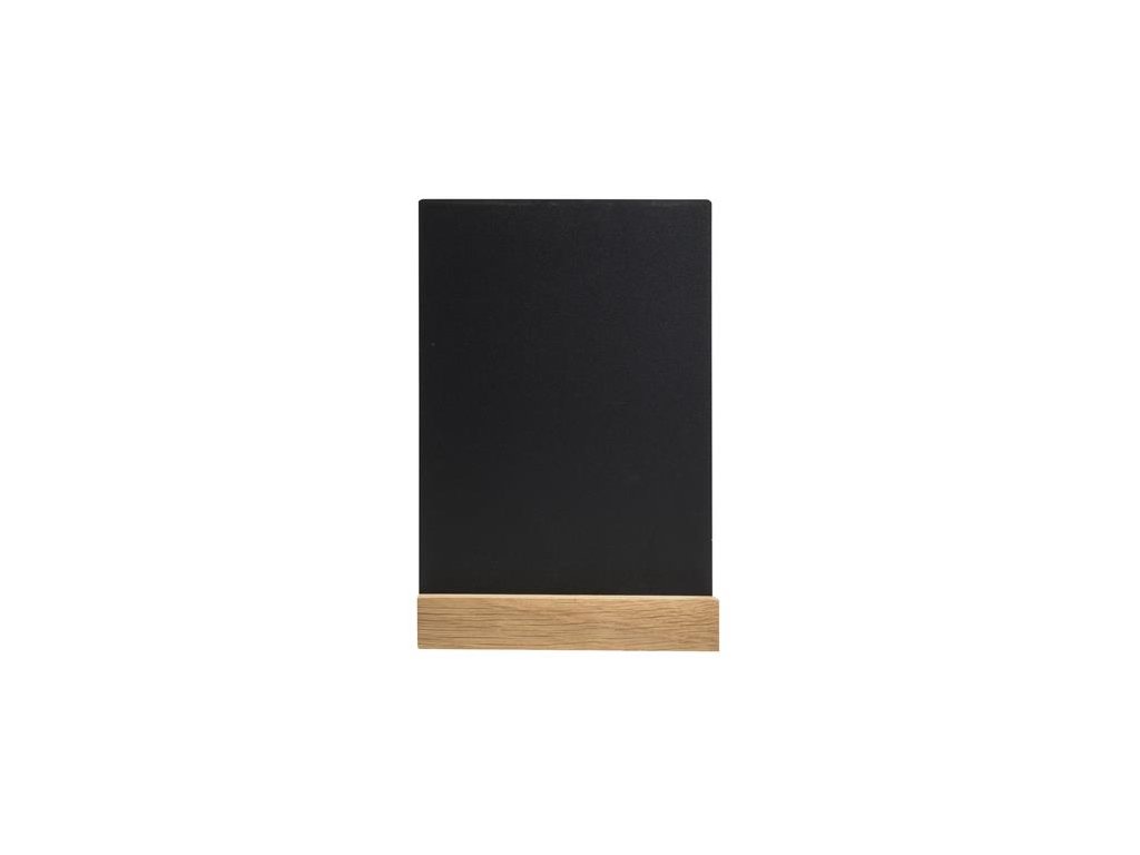 Ideálny na vystavenie jedálnych lístkov, cien či ponúk na stole. -vyrobený z ABS plastu -vhodný na písanie kriedou alebo kriedovým popisovačom -obojstranný -zvislá orientácia -podstavec z dubového dreva -rozmery: 148 x 52 x 210 mmDodatočné parametre