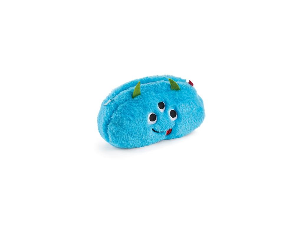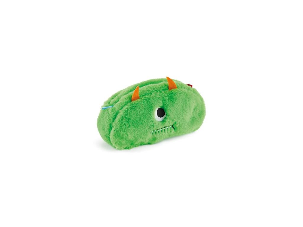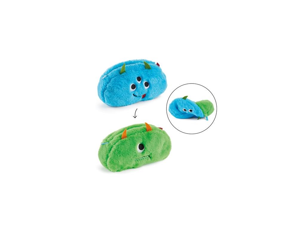 Chlpatá taštička na doplnky "Monster", obojstranná, APLI Back2Fun: zapínanie na zips, materiál: mäkký, chlpatý polyester s vyšívanými detailmi, rozmery: 230 x 1120 x 60 mm, farba: modrá/zelená