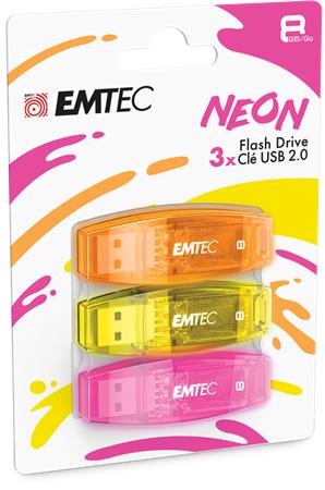 USB kľúč, 8GB, 3 ks, USB 2.0, EMTEC "C410 Neon", oranžová, žltá, ružová