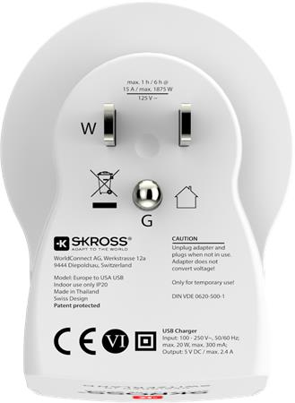 Cestovný adaptér, do USA, USB, uzemnený, SKROSS