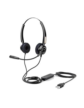 Slúchadlá USB s ovládačom namontovaným na kábli. - náušníky poskytujú prirodzenú zvukovú izoláciu - dĺžka nylonového kábla: 2,1 metra - pripojenie: USB-A (USB 2.0 alebo 3.0) - nastaviteľné rameno mikrofónu - vstavaný ovládač pre nastavenie hlasitosti a vypnutie mikrofónu - frekvenčný rozsah 100 - 10 000 Hz - priemer reproduktora: 30 mm