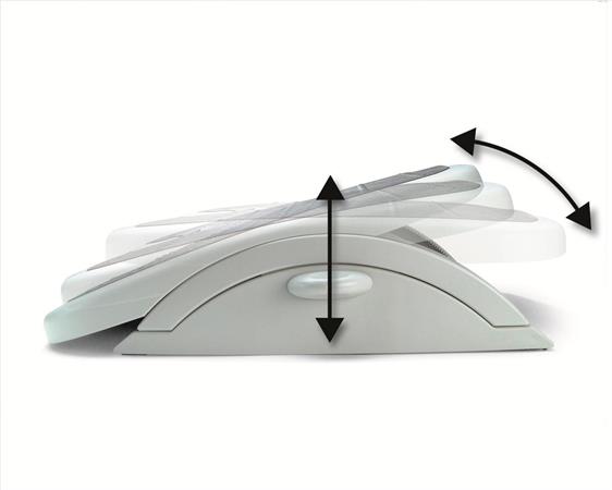 redukuje zaťaženie chrbtice, protišmykový povrch, uhol sklonu individálne nastaviteľný pomocou nohy, nastaviteľná výška v 6 rôznych polohách