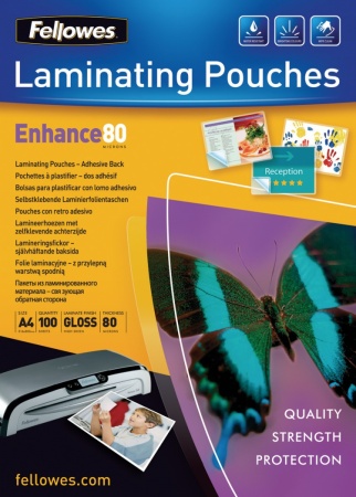Laminovacia fólia, 80 mikr., A4, lesklá, samolepiaca, 100 ks, FELLOWES
