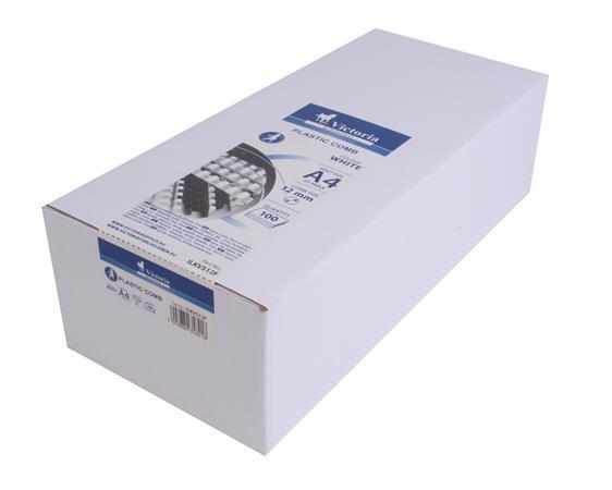 Hrebeň, plastový, 12 mm, 56-80 listov, VICTORIA OFFICE, biely