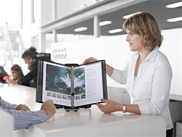 Držiak na prezentačné tabule, stolový, A4, 10 ks, DJOIS "Veo", strieborno-čierna