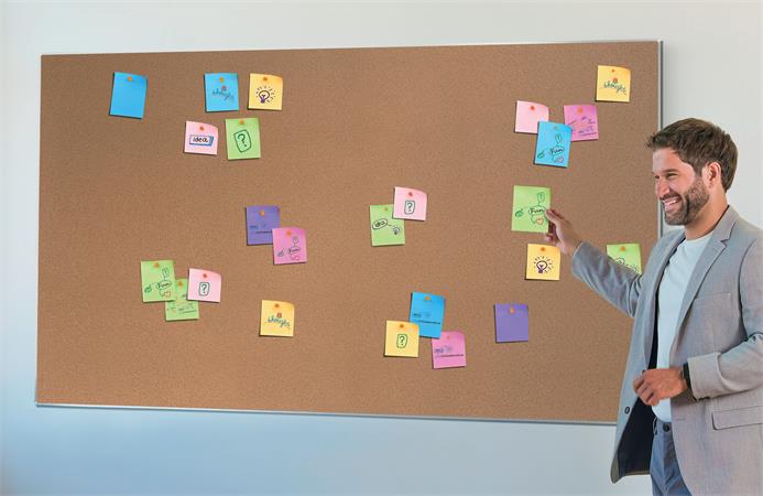 korková tabula so širokým pomerom strán a moderným úzkym rámom a väčším povrchom na písanie