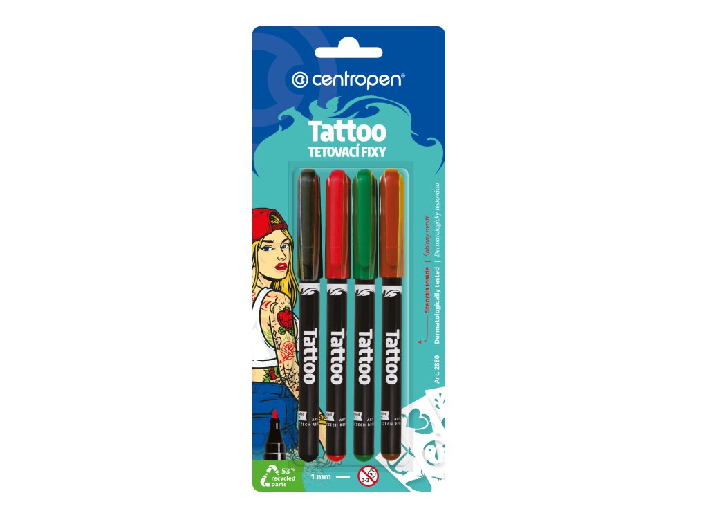 Nový, bezbolestný a ľahký spôsob tetovania pre deti a mládež. Súprava obsahuje dve samolepiace šablóny a 4 rôznofarebné popisovače naplnené tetovacími atramentmi. Tetovanie vydrží až 60 hodín, je možné odstrániť ho mydlom a vodou. Atrament bol prísne dermatologicky testovaný.