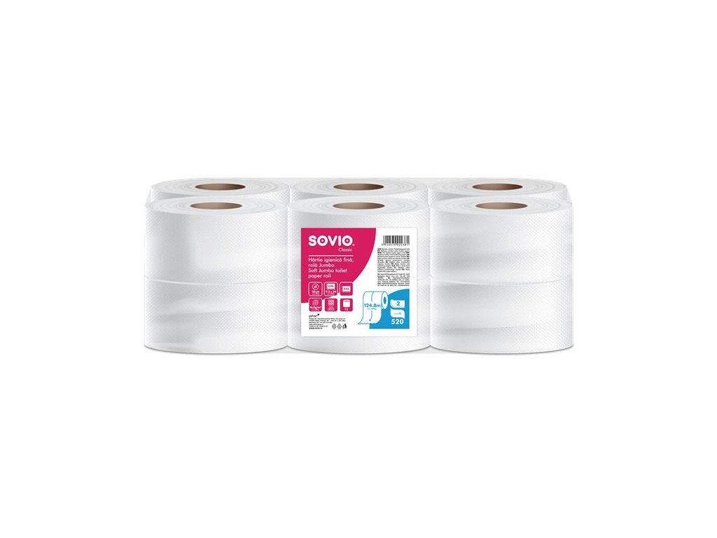 Sovio toaletný papier vďaka veľkému baleniu odporúčame do priestorov so strednou a vysokou návštevnosťou, ako sú HoReCa, fabriky, nákupné centrá, kancelárie, kaderníctva/kozmetické salóny, lekárske ordinácie a kliniky, dopravné zariadenia a verejné inštitúcie. Na jednom kotúči je omnoho viac papiera než na bežných rolkách, takže ich treba meniť menej často.