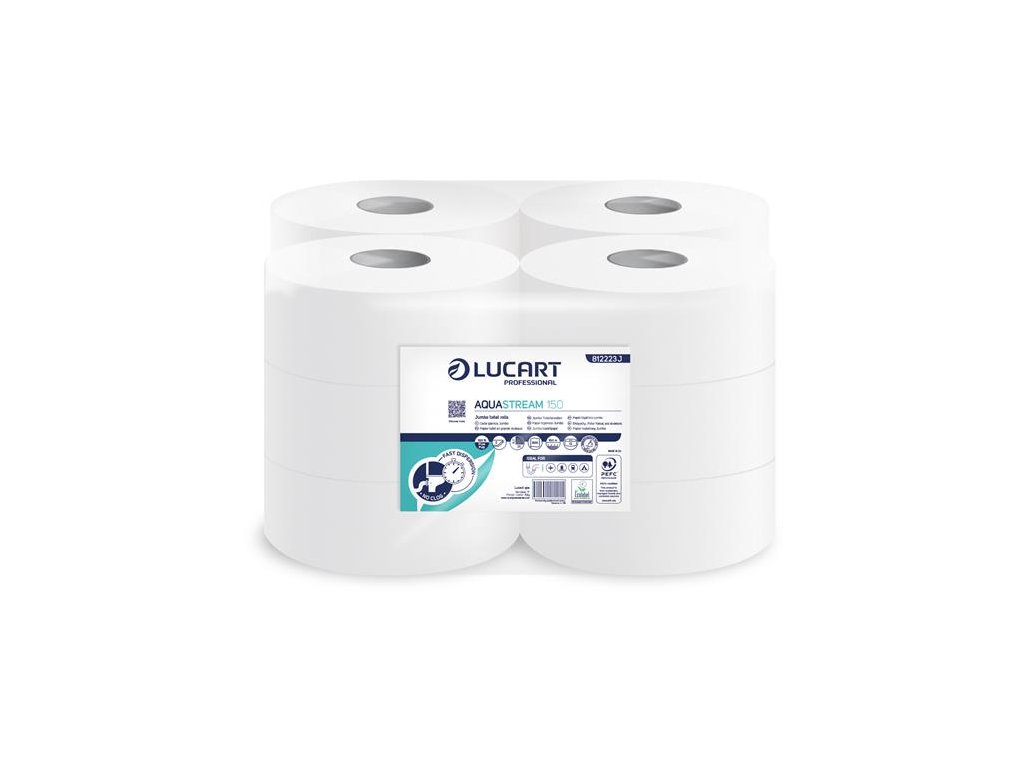 Toaletný papier, 2-vrstvový, maxi, 150 m, 19 cm priemer, LUCART "Aquastream 150", biela