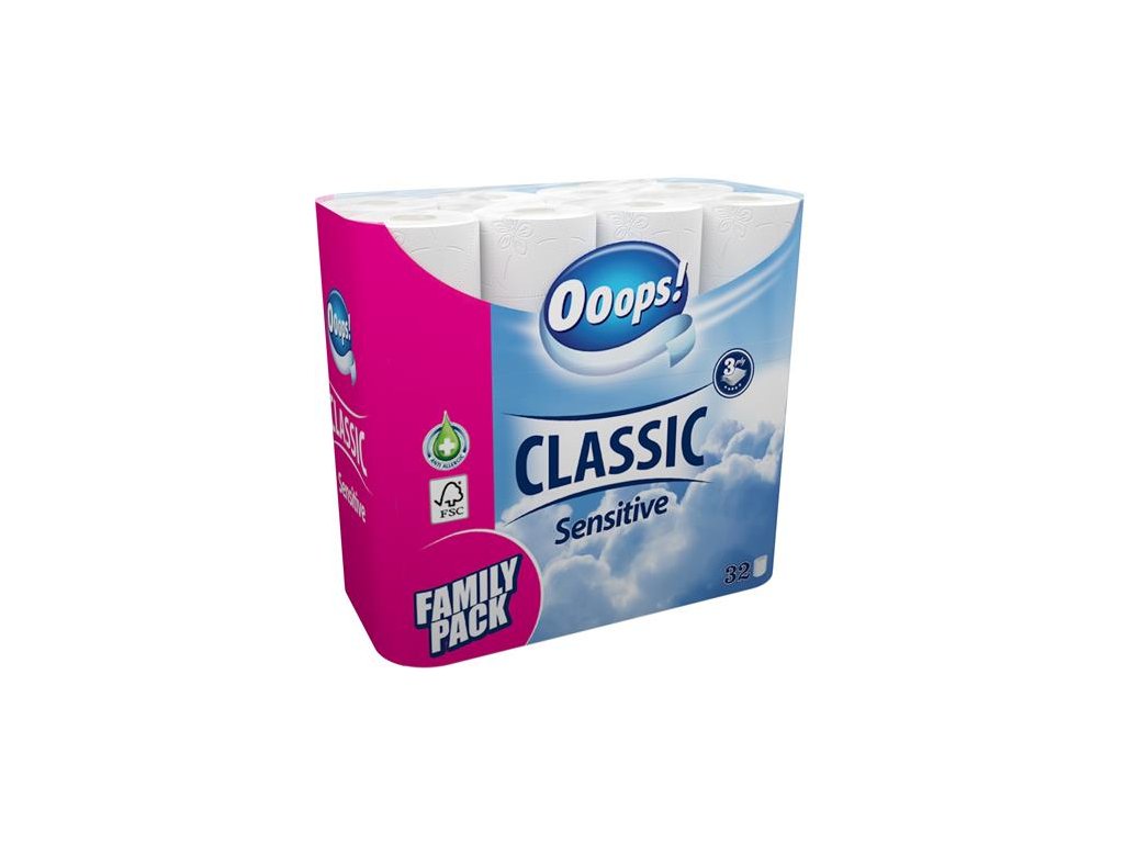Toaletný papier, 3-vrstvový, malý kotúč, 32 kotúčov, OOOPS "Classic", sensitive