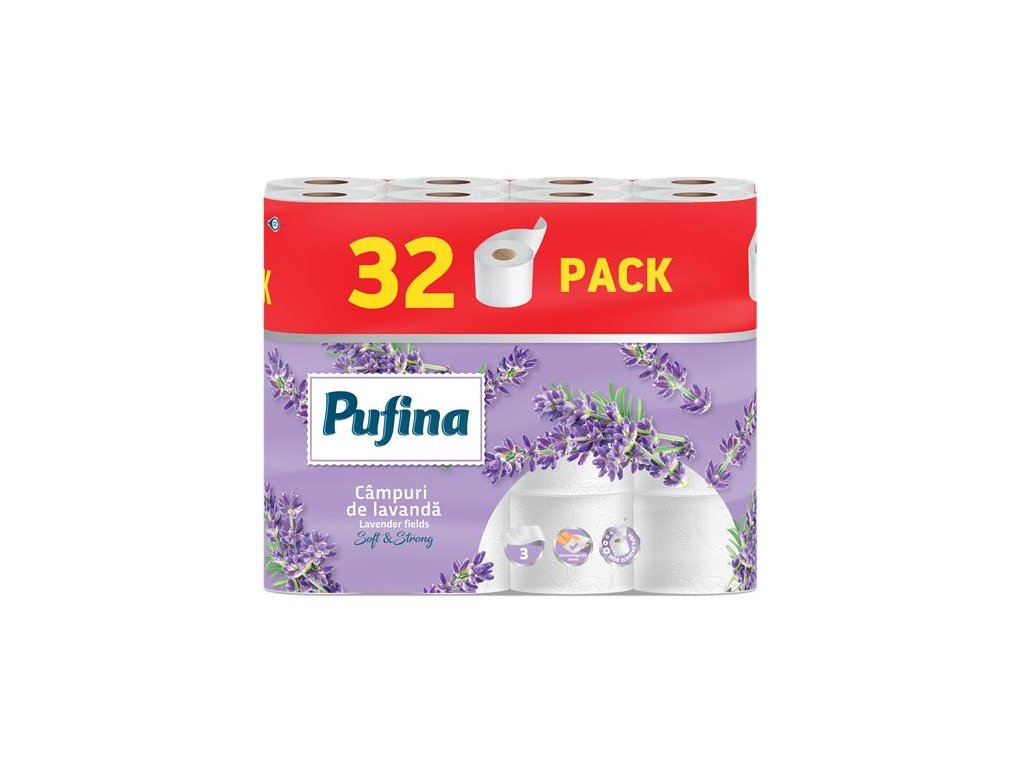 Toaletný papier, 3-vrstvový, malý kotúč, 32 kotúčov, PUFINA "Lavender Fields", s vôňou levandule