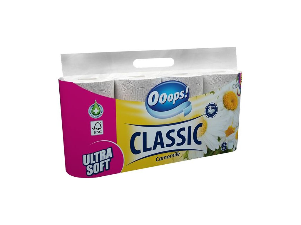 Toaletný papier, 3-vrstvový, malý kotúč, 8 kotúčov, OOOPS "Classic", kamilka