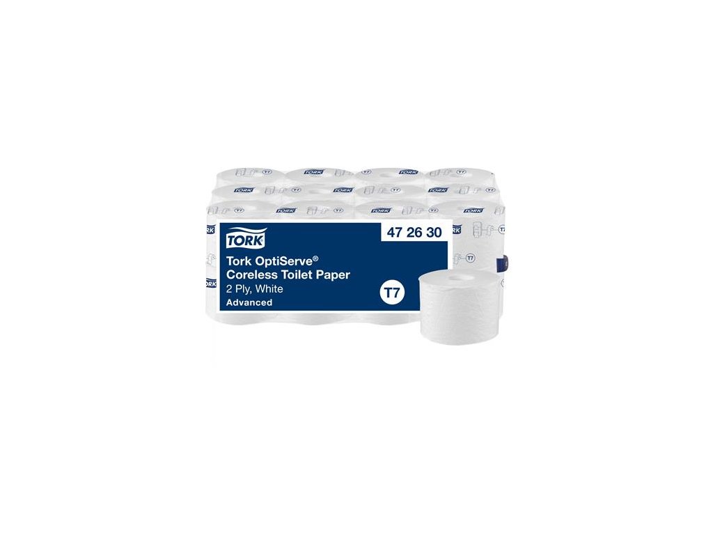 Toaletný papier, bezdutinkový, T7 systém, 2-vrstvový, priemer 13,1 cm, Advanced, TORK "OptiServe", biela