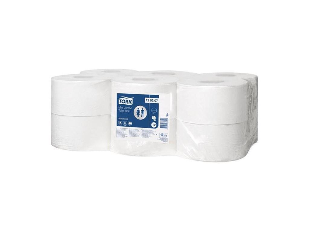 Toaletný papier, T2 systém, 2-vrstvový, priemer: 19,5 cm, Advanced "Mini Jumbo", biela